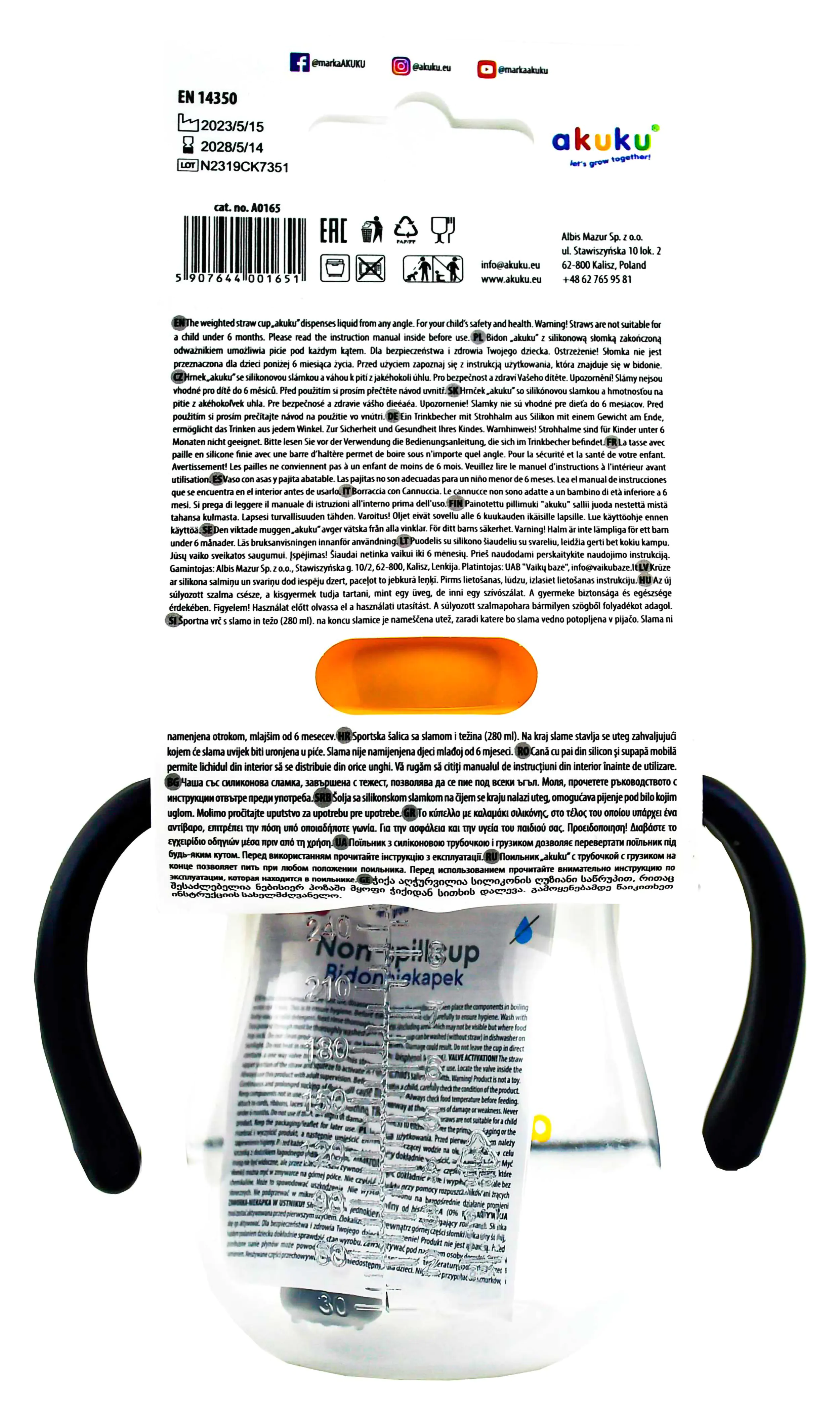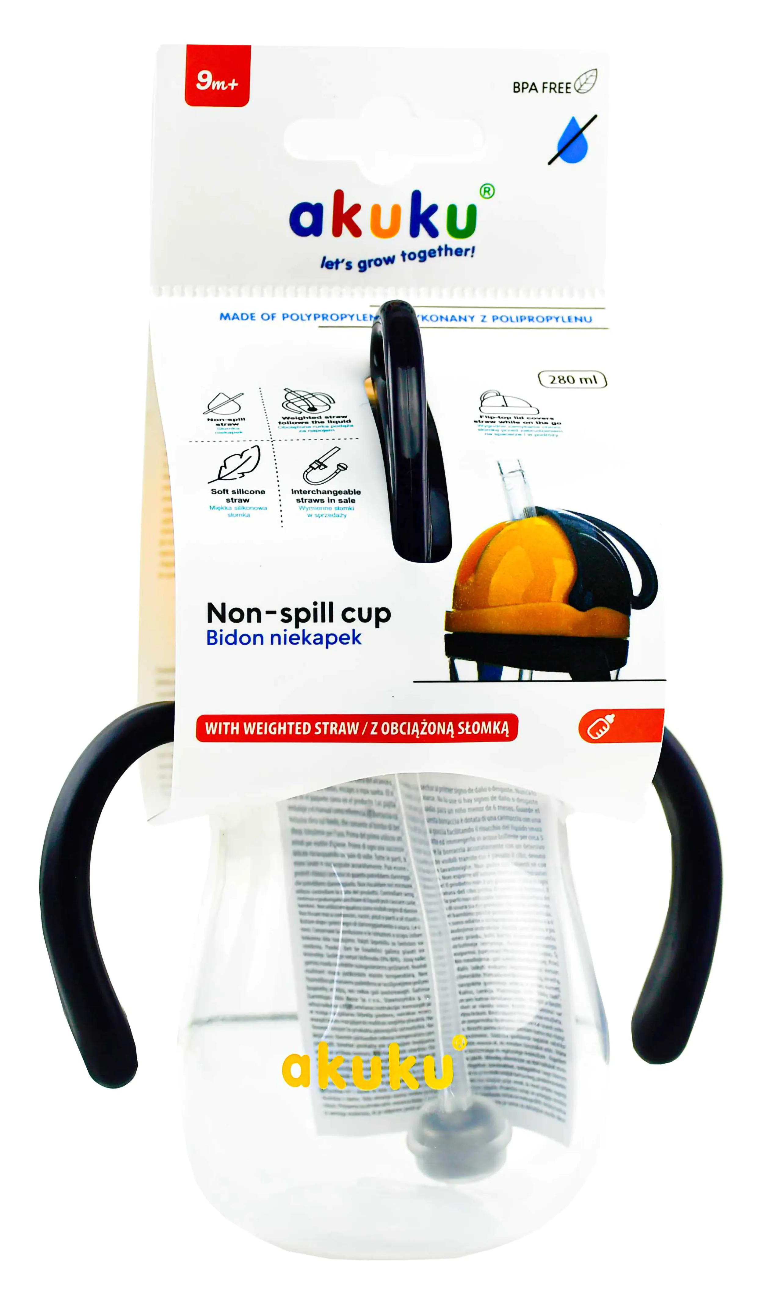 Bidon ze Słomką i Odważnikiem Akuku 280 ml – Niekapek 9m+