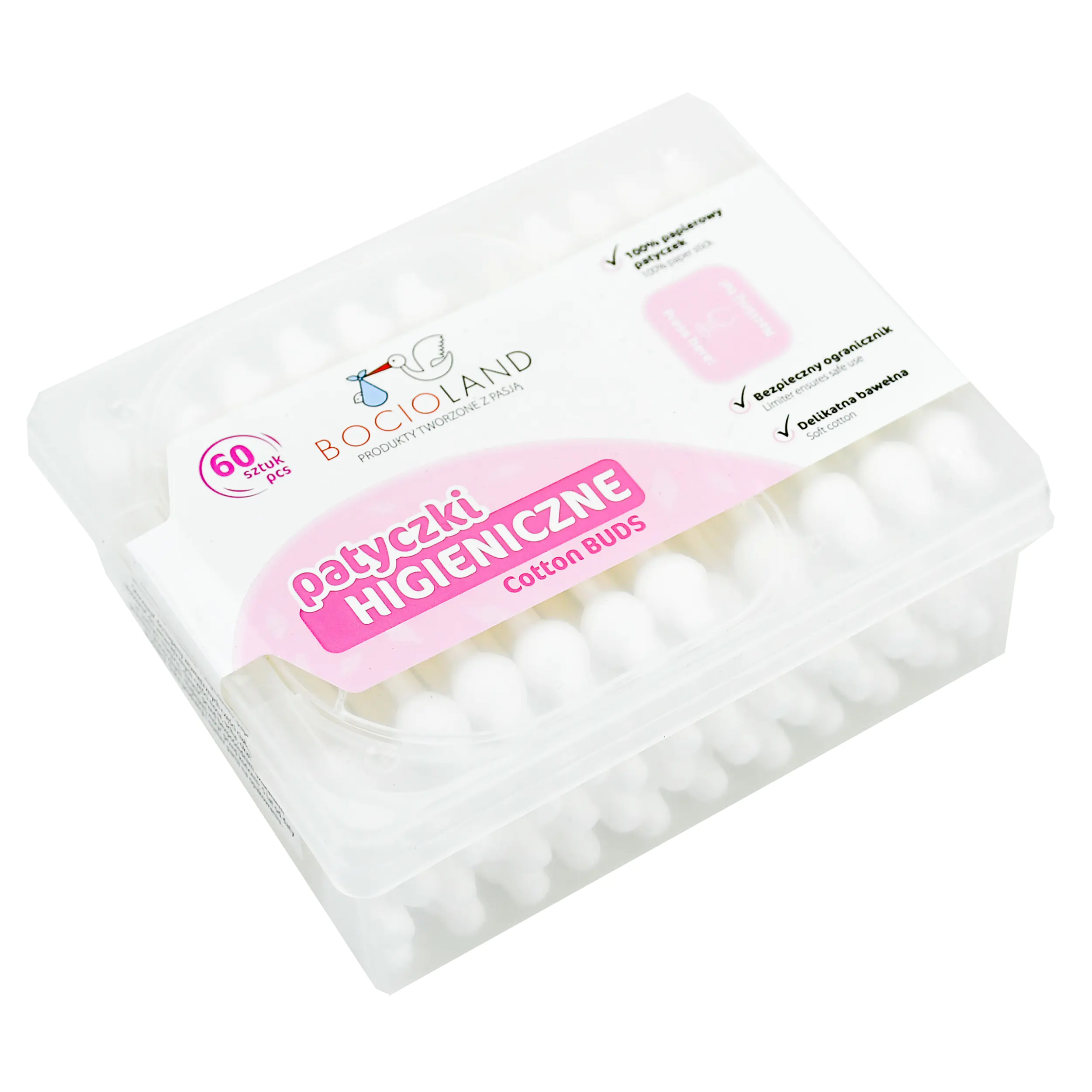 Patyczki Higieniczne dla Niemowląt z Ogranicznikiem Bocioland – 100% Bawełna – 60 szt.