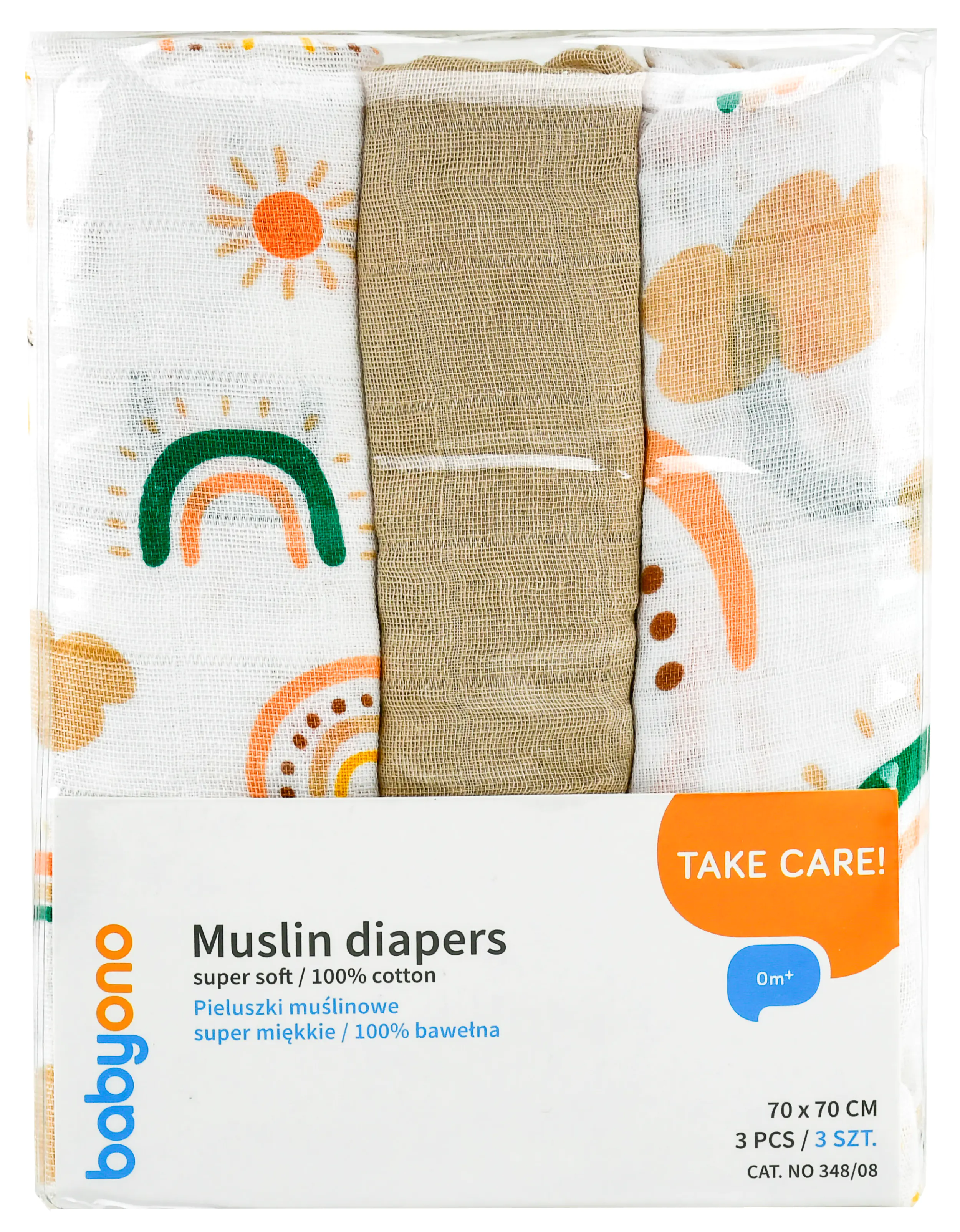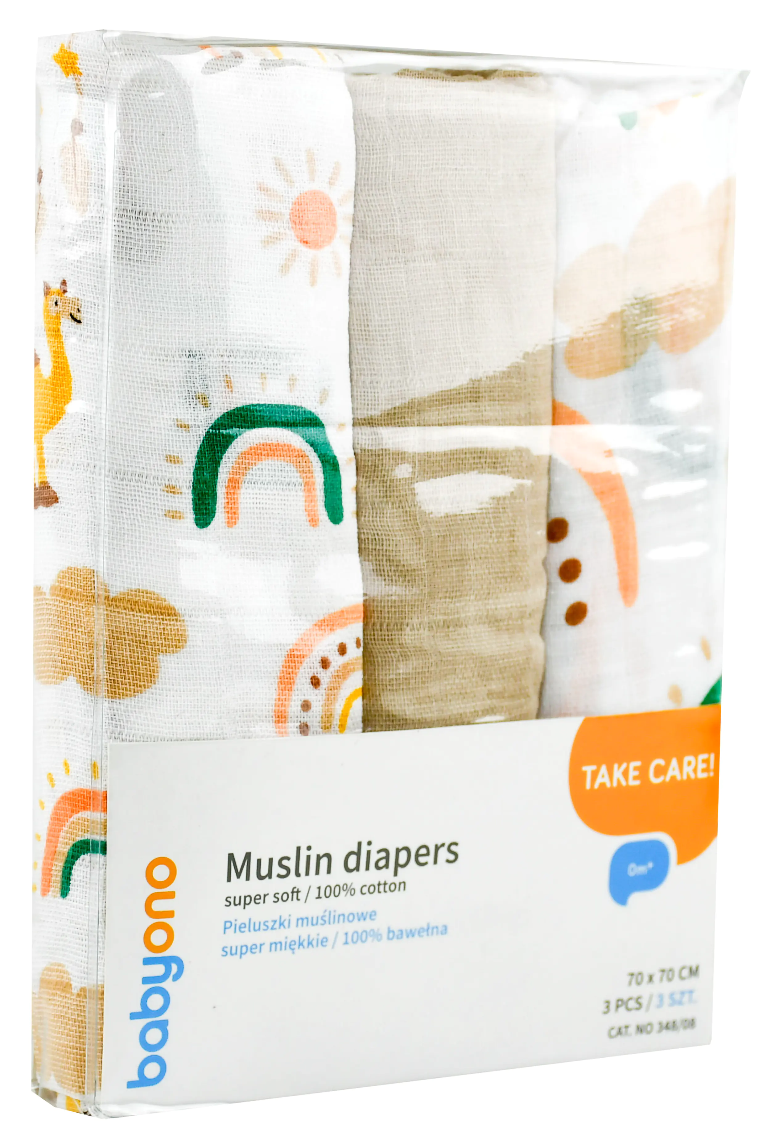 Pieluszki Muślinowe 3 Sztuki BabyOno