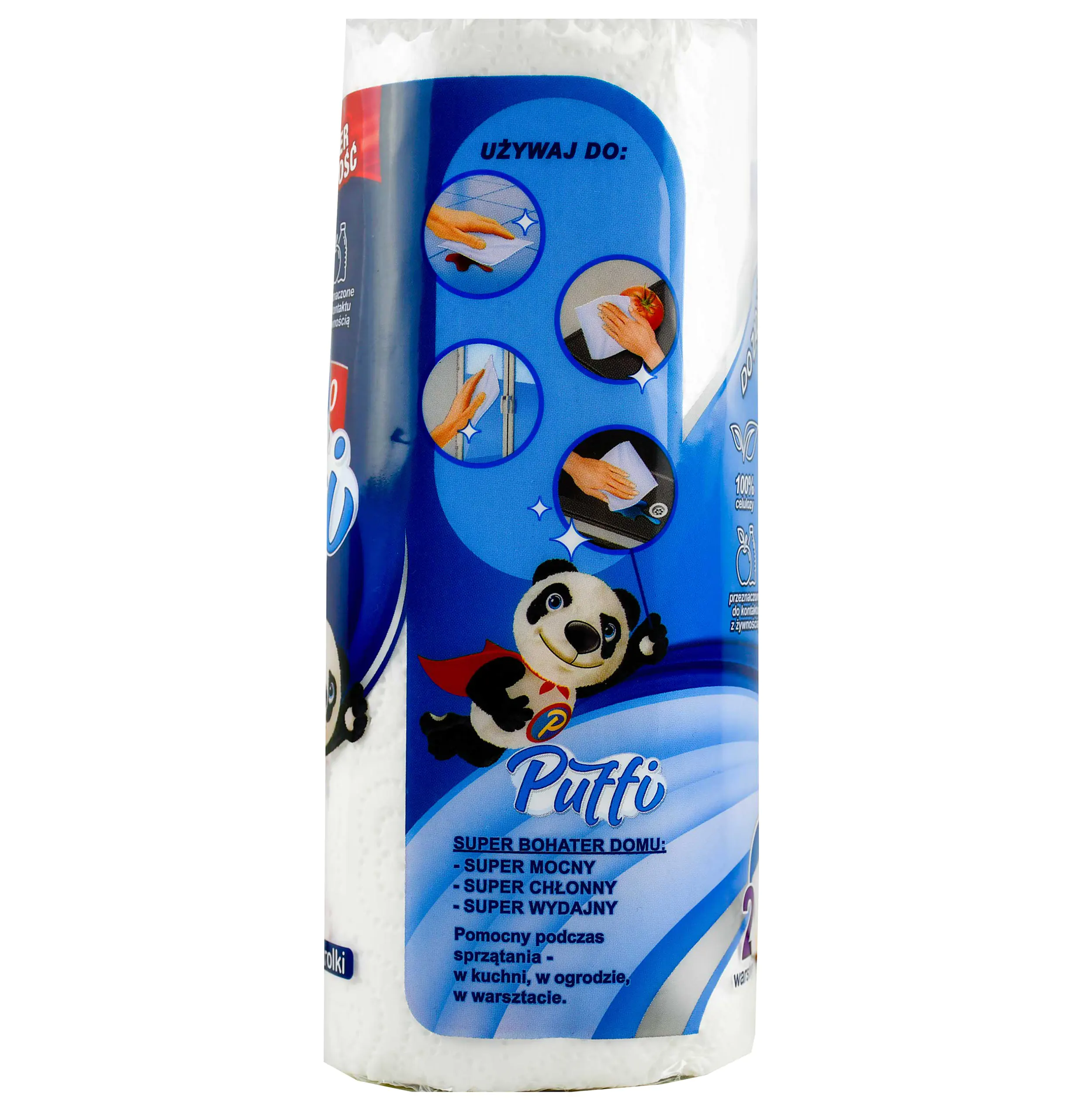 Bezpieczeństwo żywności: Specjalnie zaprojektowany do kontaktu z żywnością, ręcznik papierowy Puffi Duo jest bezpieczny w użyciu przy przygotowywaniu posiłków, zapewniając higienę i czystość w każdej kuchennej sytuacji.
