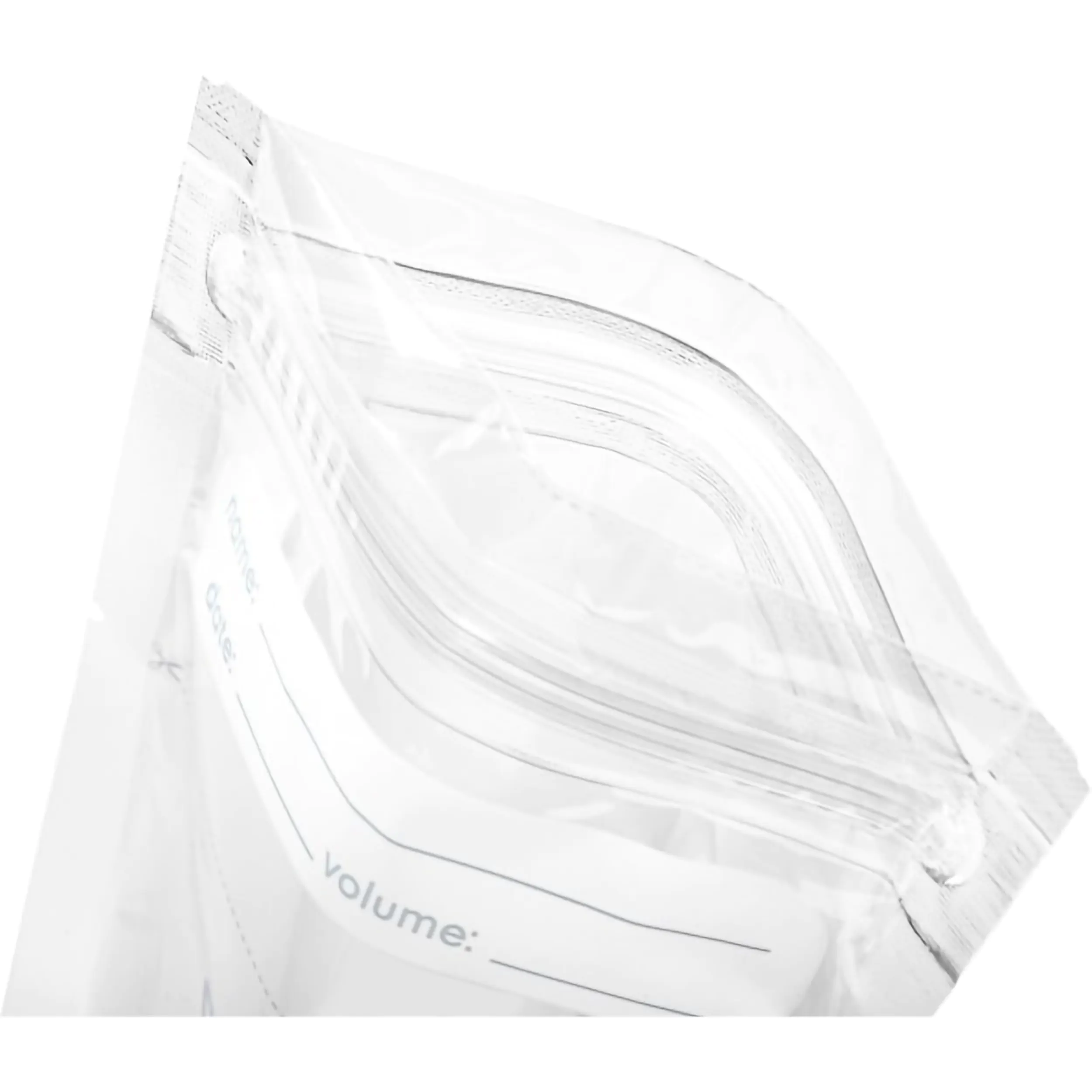 Pełna Kontrola (Etykieta i Miarka): Każdy woreczek posiada czytelną podziałkę (do 150 ml) oraz białe pole do zapisu daty, godziny i ilości odciągniętego mleka. To kluczowe dla zachowania zasady "pierwsze weszło, pierwsze wyszło".