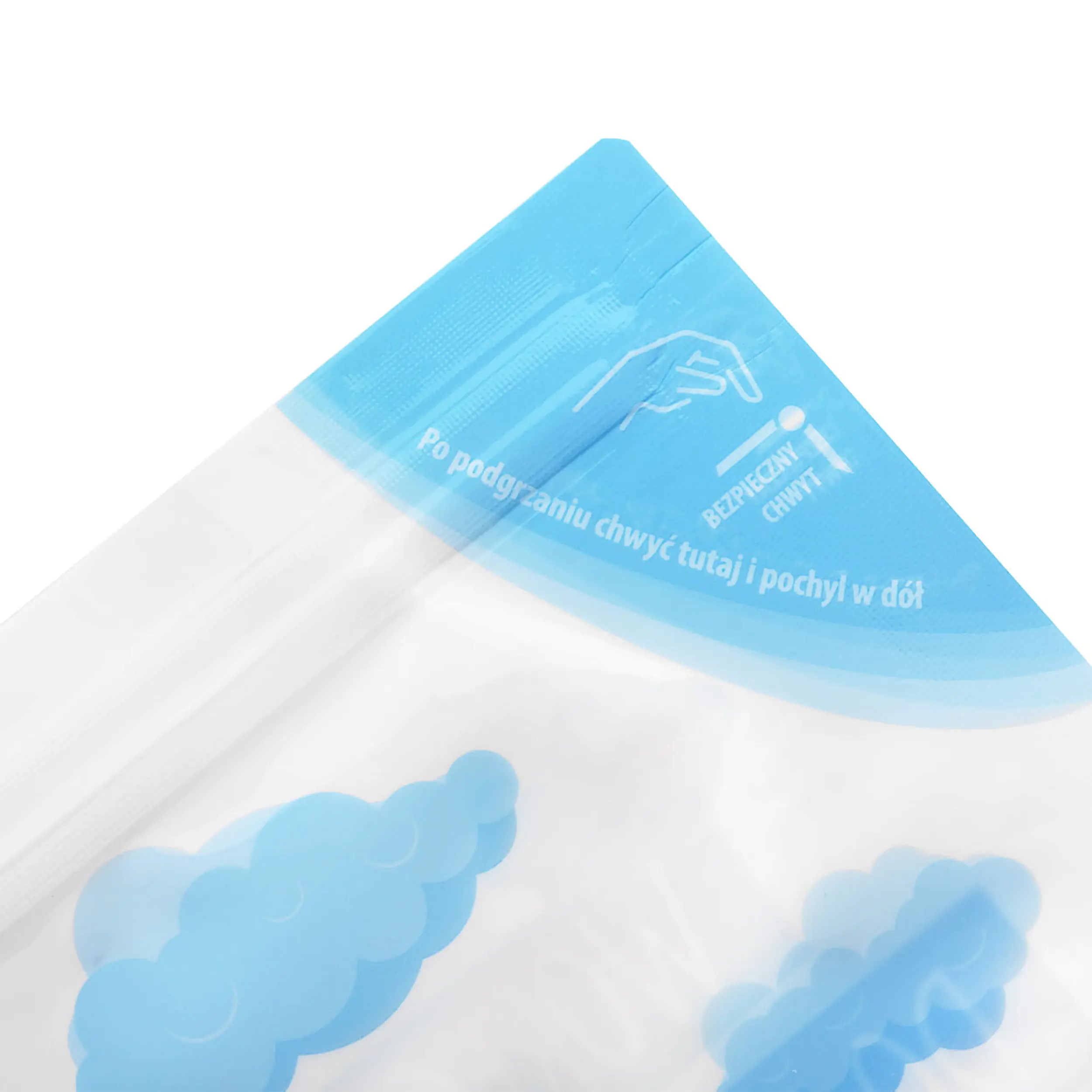 Oszczędność miejsca: Woreczki są płaskie i lekkie. Z łatwością zmieszczą się w szafce kuchennej lub bocznej kieszeni torby do wózka.